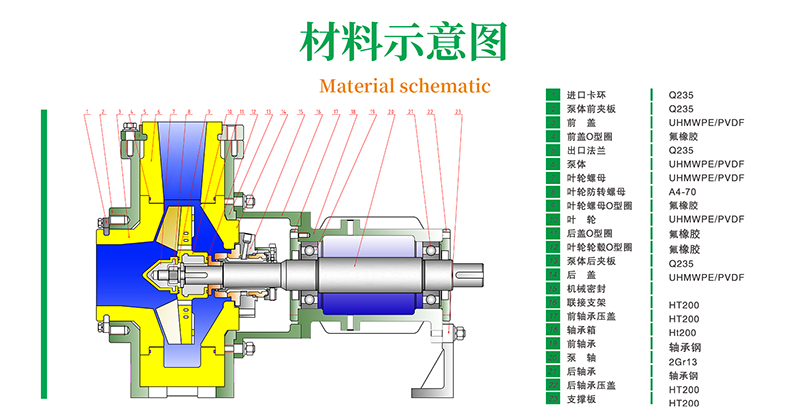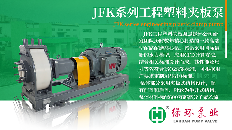 JFK工程塑料夾板泵是綠環公司技術團隊歷時數年精心打造的一款高端型耐腐耐磨離心泵。該泵引進德國相關技術,應用CFD計算方法,結合API610標準設計而成。泵體部分采用夾板式結構設計,配有前后夾板和前后蓋,葉輪為半開式結構,過流部件材料標配為600萬【改性】超高分子聚乙烯,可根據工況選配PPH、***配方材料PVDF+碳纖維增強復合材料,前后蓋采用加厚設計,***小設計厚度為30MM,耐磨性能極強。機封標配采用綠環自主開發的雙端面集裝靜止式機封。可廣泛應用于“強腐蝕、強磨蝕性、高溫”工況,以及容易結晶含固量顆粒性的料漿輸送。