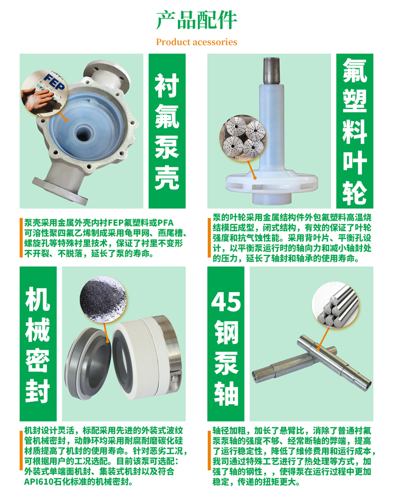 該泵可用于抽送鹽酸(濃度不限)、稀硫酸(85%)、磷酸、氫氟酸、其它混合酸、堿液等 ,硝酸除外。可抽送...